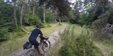 Well-maintained GTMC tracks take you up to the summits of the mighty Mont Lozère, surrounded by high summer pastures and copses of Scots pines. Next, enjoy magnificent views from a balcony of a stretch of track, the panorama sometimes opening up to the south, sometimes to the north, with the Margeride area you may just have cycled through. While the route doesn’t take in the summits of the Mont Lozère themselves, you pass close by, before reaching the Col de Finiels, a pass at one of the highest points along the whole of the GTMC – 1,541m above sea level.