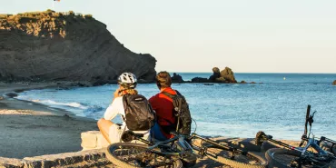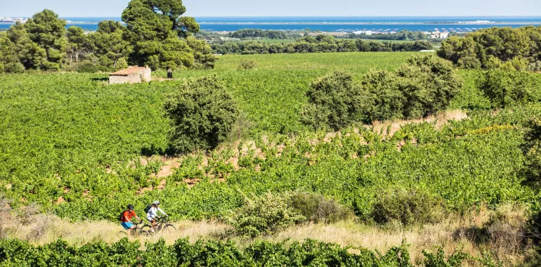 Between Montagnac and Castelnau-de-Guers, the route alternates between smooth-rolling tracks and enjoyable, sometimes technically demanding paths. Avoid a particularly technically challenging section at the level of the Trou du Renard by going along the road. The final part of the route is easy, leading you sometimes through vineyards, sometimes on roads, sometimes beside the Canal du Midi, or then the Hérault River around Agde. Well-laid-out cycle lanes allow you to cross the resort of Cap d’Agde rapidly to finish at the true cape, looking down on the beaches of Grande Conque and La Plagette.