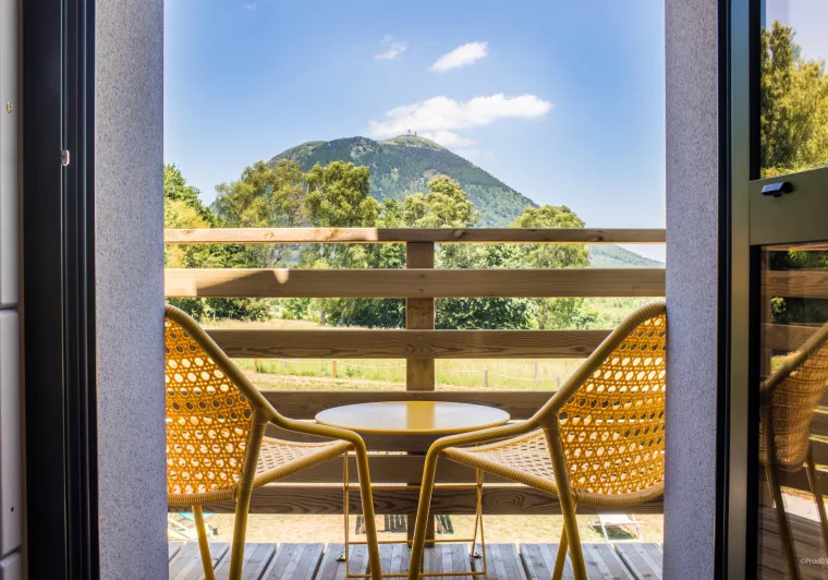 Vue imprenable sur le puy de Dôme, depuis la terrasse ou de la salle de restaurant.