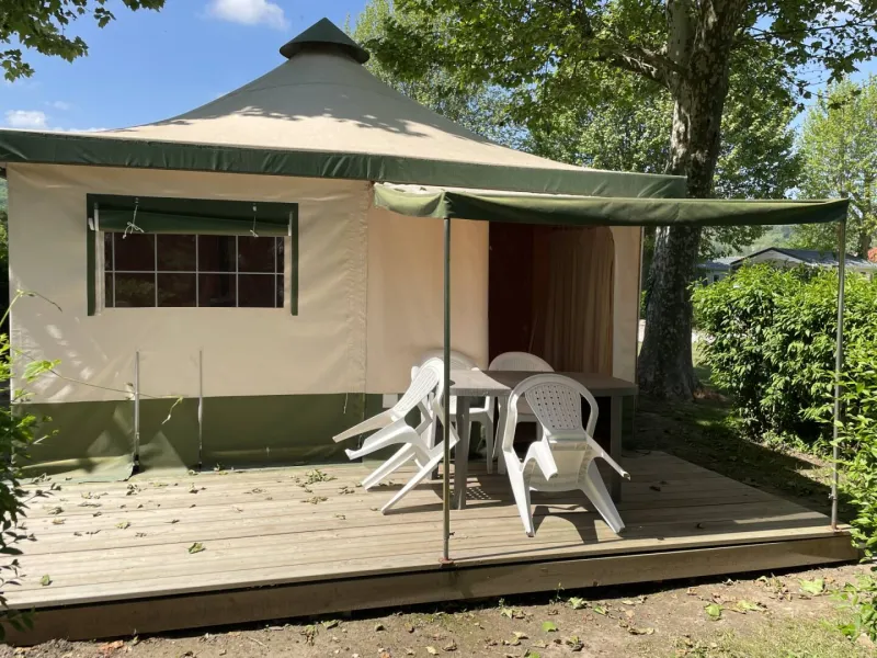 Pleasant campsite close the river.1 canvas bungalow 4 people and 4 wooden barrels equipped and comfortable. Ideal short stay, for families.