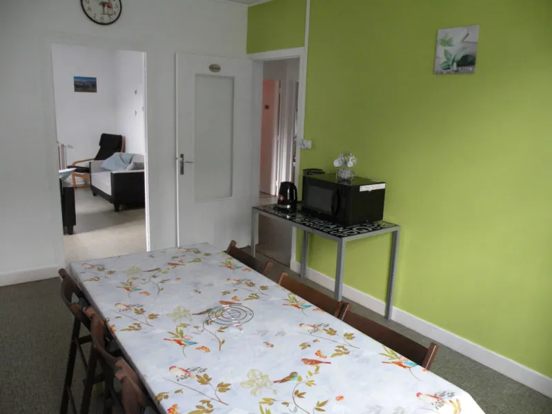 Jardin commun à l'arrière du bâtiment (passer par l'extérieur pour y accéder), au bord du Sioulot, au milieu des arbres fruitiers (salon de jardin).A moins de 30 min de Vulcania, Panoramique des Dômes, Téléphérique du Sancy, Volcan de Lemptégy, Puy Pariou, à 10 minutes des lacs de Guery et Servière et du Centre Montagnard Cap Guery (ski de fond/raquettes). Garage (idéal motards). Nous disposons de plusieurs logements dans la villa, info sur demande.