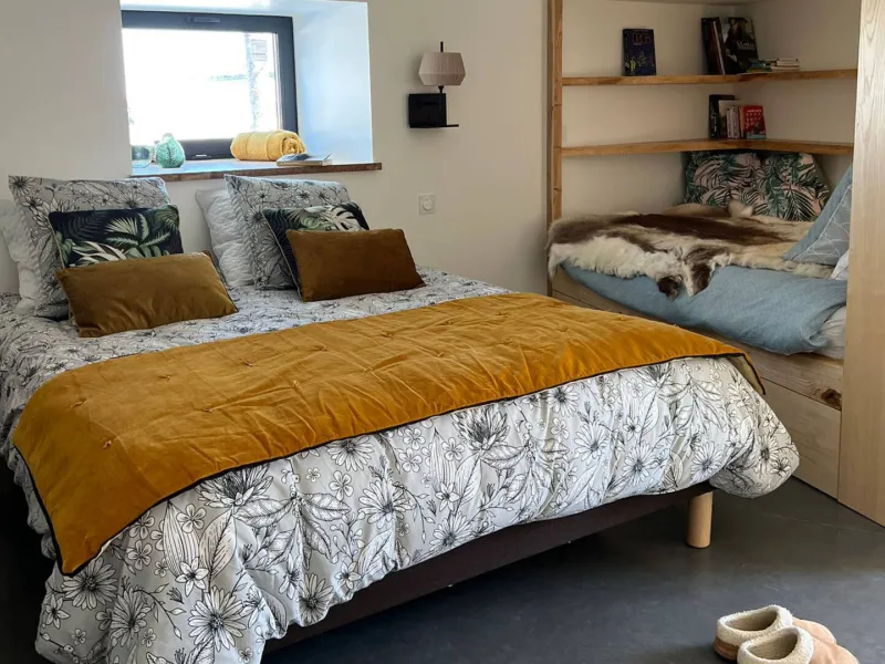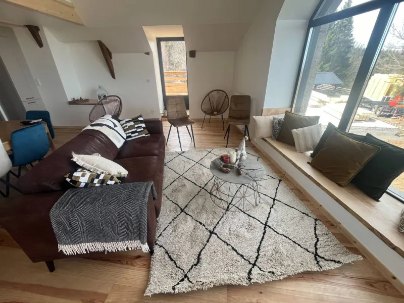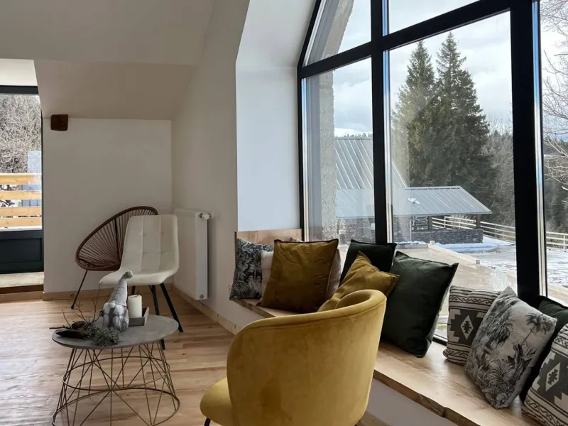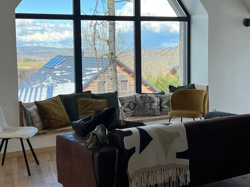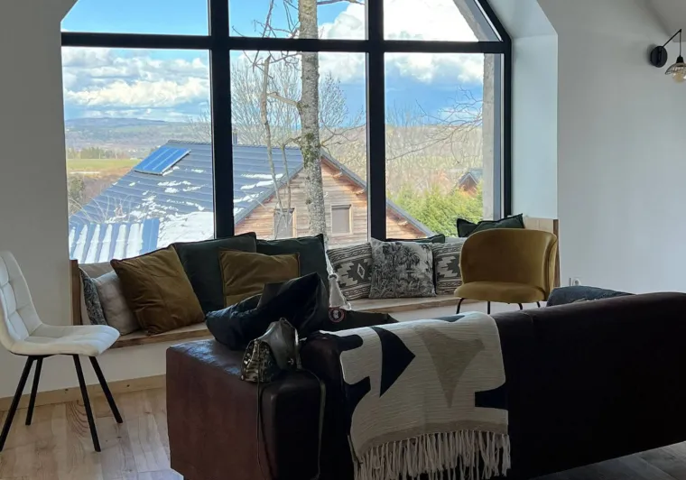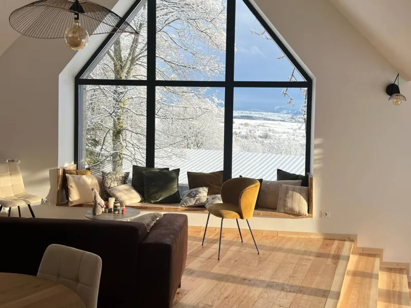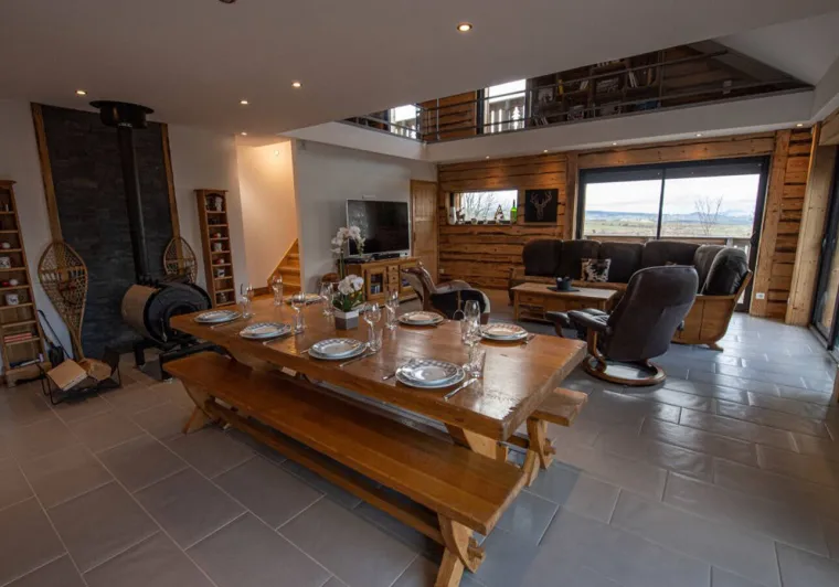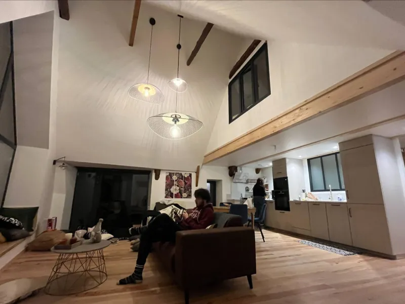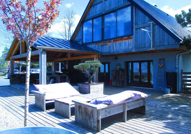 - Grandes baies vitrées, terrasses et jardin offrant une magnifique vue sur les volcans.- Équipement luxueux : 2 suites (incluant salle de bain et WC, …), un dortoir (incluant un lit 200x200...), un sauna extérieur, 4/5 places dominant les volcans.